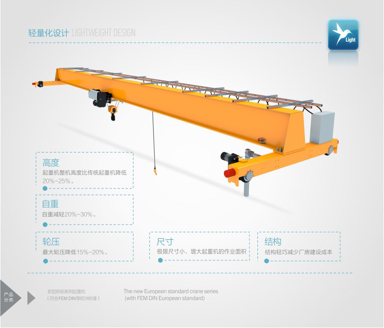 2、 該產(chǎn)品技術(shù)先進(jìn),設(shè)計(jì)按照國(guó)際標(biāo)準(zhǔn):DIN(德國(guó))、FEM(歐洲)、ISO(國(guó)際),具有剛性強(qiáng)、自重輕、結(jié)構(gòu)設(shè)計(jì)出眾等優(yōu)點(diǎn),能有效地節(jié)約廠房空間和投資成本,行走結(jié)構(gòu)特點(diǎn)獨(dú)特。