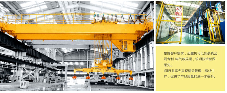 1、 本起重機(jī)帶有可拆卸的電磁盤,特別適用于搬運(yùn)具有導(dǎo)磁性的黑色金屬制品與材料,如鋼錠、型鋼、生鐵塊等。主要用于鋼鐵企業(yè)軋線、成品庫,船廠鋼料堆場(chǎng)、下料車間等。
