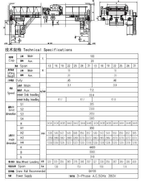二、 產(chǎn)品簡(jiǎn)圖及技術(shù)規(guī)格(QD100/20t)