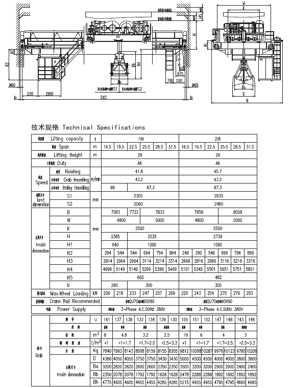 4、 額定起重量包含抓斗自重。